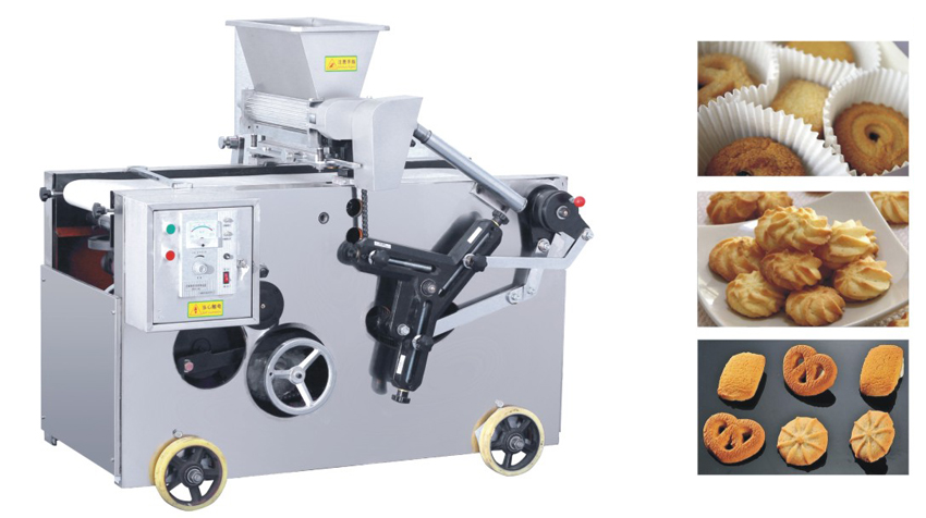 曲奇糕點機,是通過面團擠出成形,能生產(chǎn)多種獨特花式點心和曲奇餅干坯的成形機,具有技術(shù)先進、結(jié)構(gòu)緊湊、多功能、操作簡單等特點,深受廣大用戶所歡迎,也是投資者目前市場最理想的新型儀器機械之一。該機具有多種模具,能生產(chǎn)幾十種花式曲奇餅干,用戶可根據(jù)需要自行調(diào)節(jié)選擇。成形的花式點心與曲奇餅干,形態(tài)獨特、花紋清晰、造型美觀。該機生產(chǎn)的生坯采用熱風(fēng)旋轉(zhuǎn)爐及隧道爐烘烤均可 |